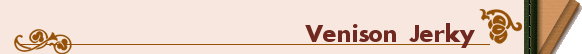 Slice about a pound of venison or beef into strips. Mix all this stuff up in a bowl, and ladel it into a freezer bag as you add layers of meat. Let this soak in the refrigerator for 1 or 2 days. Dehydrate until dry, but not too dry. Jerky should be tough but not too dry.